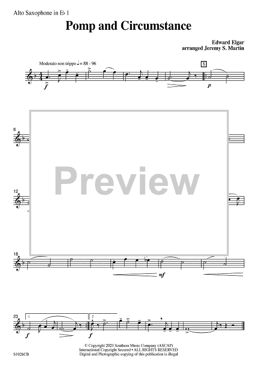 Digital Sheet Music for Pomp and Circumstance (easy) - Eb Alto Sax 1 by Edward Elgar, Jeremy S. Martin scored for Concert Band; id:502358