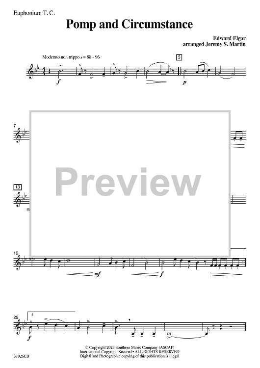 Digital Sheet Music for Pomp and Circumstance (easy) - Euphonium TC by Edward Elgar, Jeremy S. Martin scored for Concert Band; id:502368