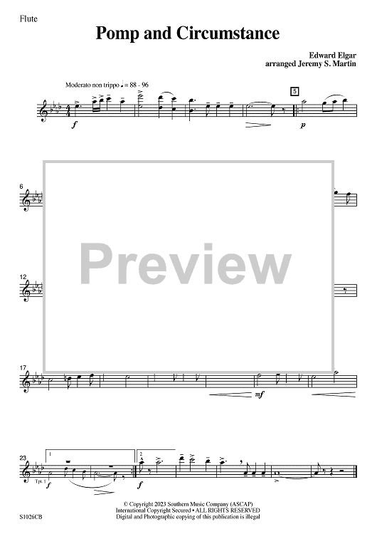 Digital Sheet Music for Pomp and Circumstance (easy) - Flute by Edward Elgar, Jeremy S. Martin scored for Concert Band; id:502352