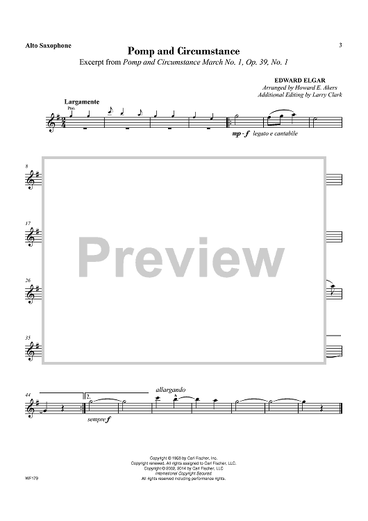 Digital Sheet Music for Pomp and Circumstance by Howard E. Akers, Edward Elgar scored for Eb Alto Sax/Piano; id:451697