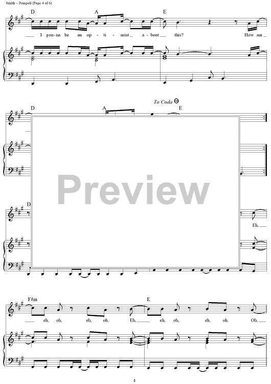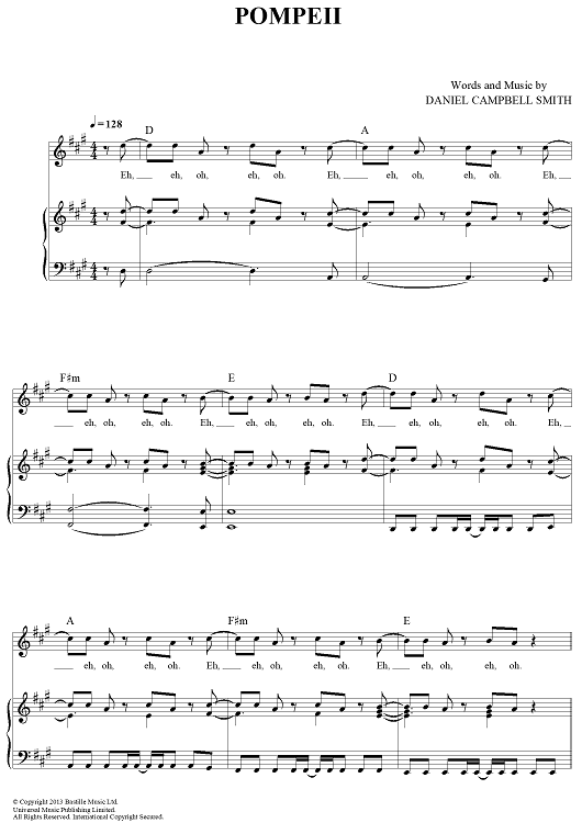 Digital Sheet Music for Pompeii by Daniel Campbell Smith, Bastille scored for Piano/Vocal/Chords; id:438147