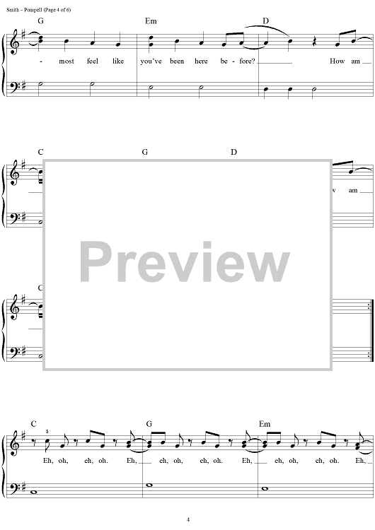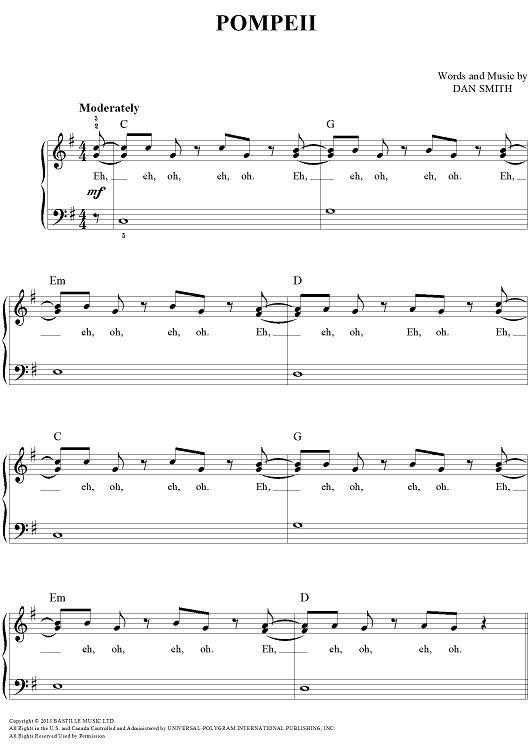 Digital Sheet Music for Pompeii by Bastille, Dan Smith scored for Easy Piano/Vocal/Chords; id:447357