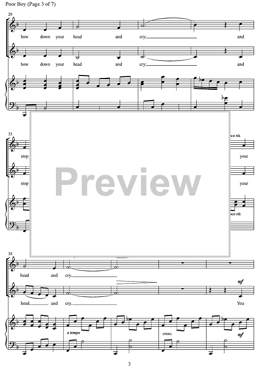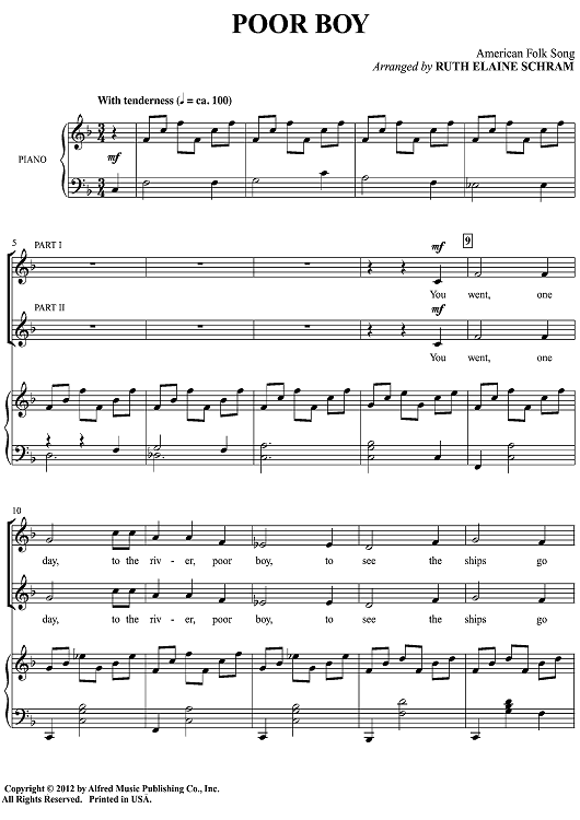 Digital Sheet Music for Poor Boy by Ruth Elaine Schram, American Folk Song scored for Piano/Vocal; id:500395