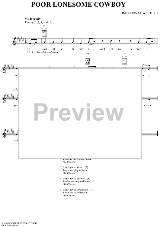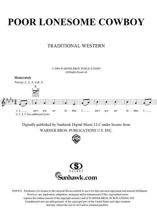 "Poor Lonesome Cowboy" Sheet Music by Traditional