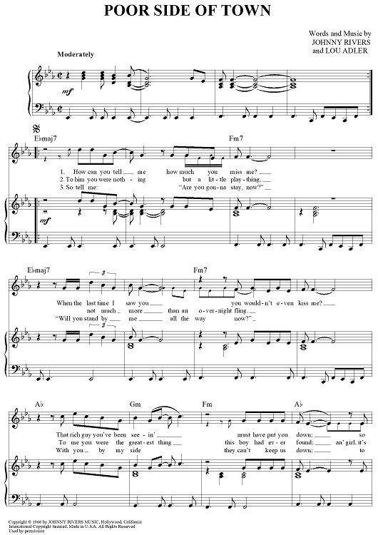 Digital Sheet Music for Poor Side of Town by Johnny Rivers, Lou Adler scored for Piano/Vocal/Chords; id:363969