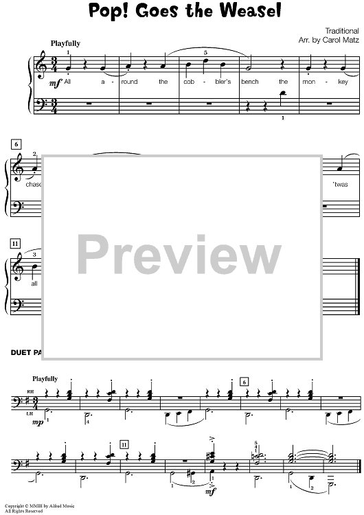 Digital Sheet Music for Pop! Goes the Weasel by Carol Matz, Traditional scored for Piano; id:497451