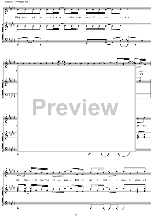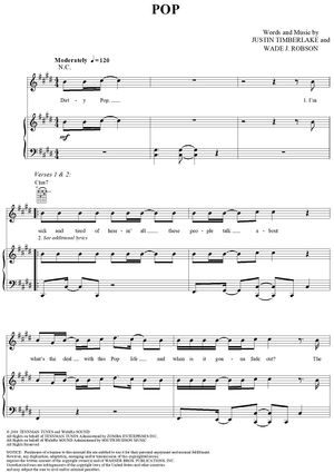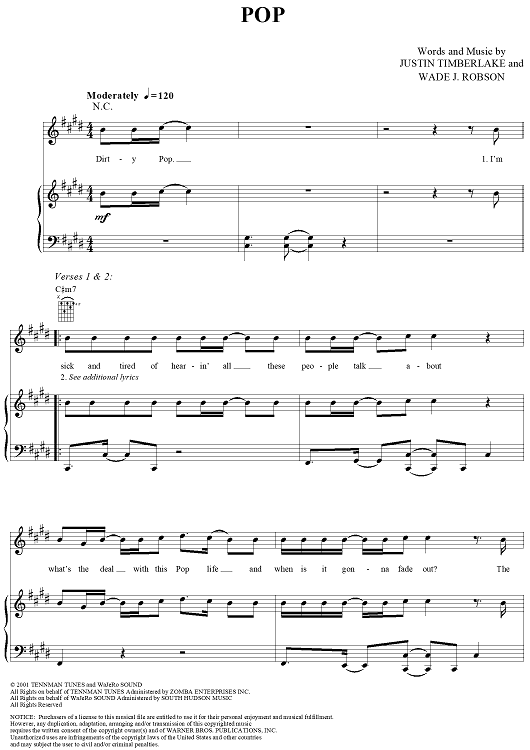 Digital Sheet Music for Pop by *Nsync, Wade Robson, Justin Timberlake scored for Piano/Vocal/Chords; id:284491