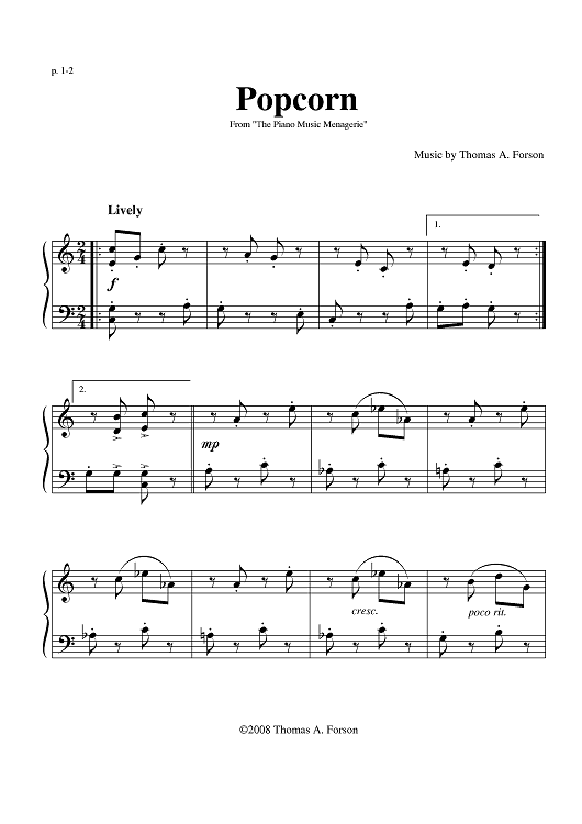 "Popcorn" Sheet Music by Thomas A. Forson