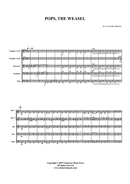 Digital Sheet Music for Pops, the Weasel - Score by Traditional, Joshua Hauser scored for Brass Quintet; id:364645