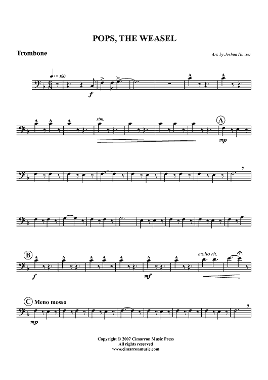 "Pops, the Weasel - Trombone" Sheet Music by Traditional