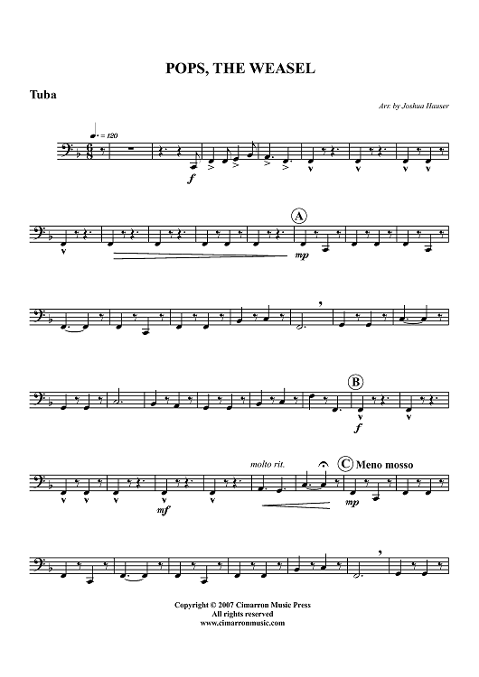 "Pops, the Weasel - Tuba" Sheet Music by Traditional