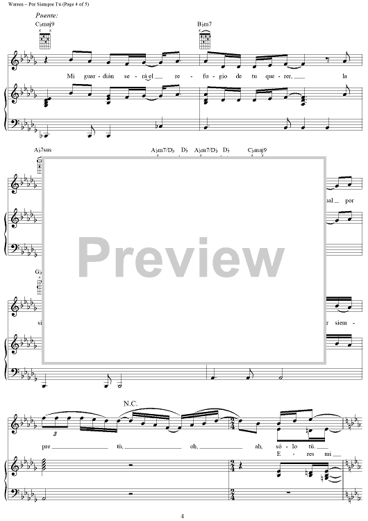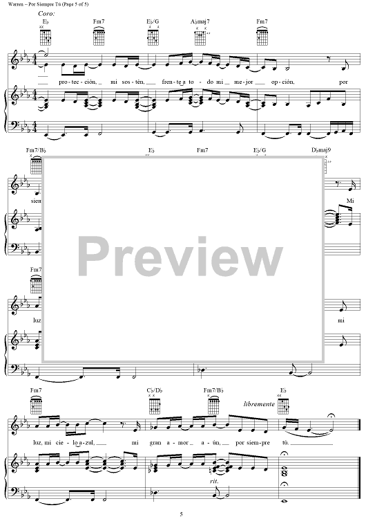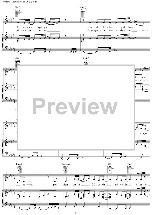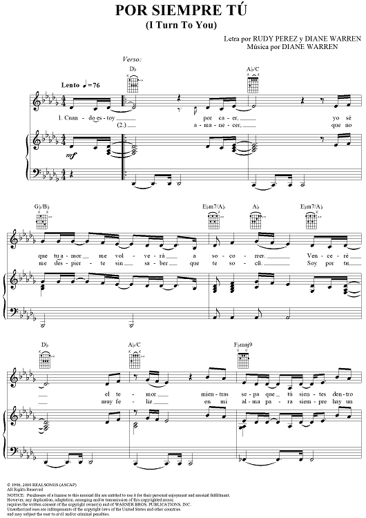 Digital Sheet Music for Por Siempre Tú by Diane Warren, Rudy Perez, Christina Aguilera scored for Piano/Vocal/Chords; id:285469