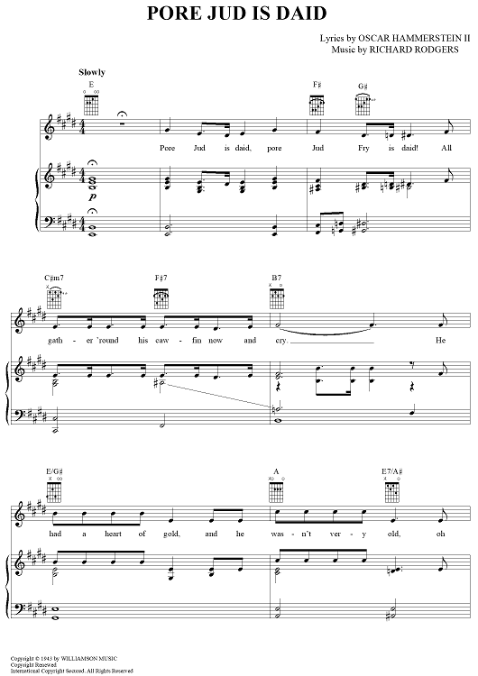 Digital Sheet Music for Pore Jud Is Daid by Richard Rodgers, Oscar Hammerstein II scored for Piano/Vocal/Chords; id:367088