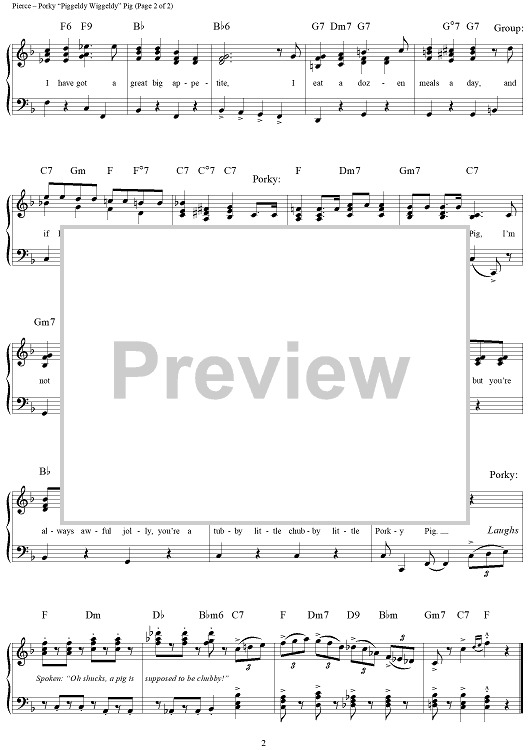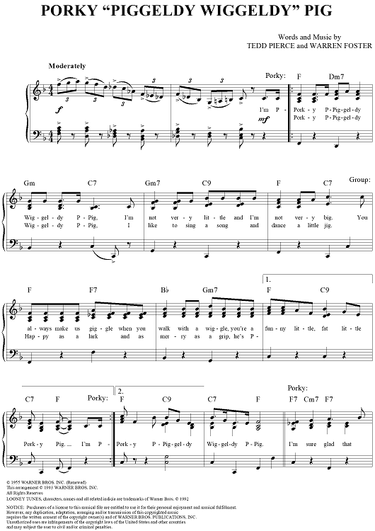 Digital Sheet Music for Porky "Piggeldy Wiggeldy" Pig by Warren Foster, Tedd Pierce scored for Piano/Vocal/Chords; id:254650