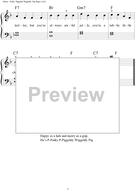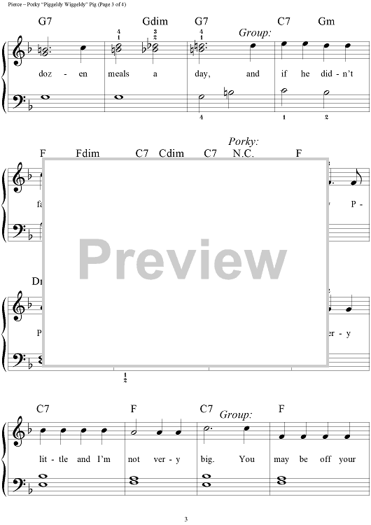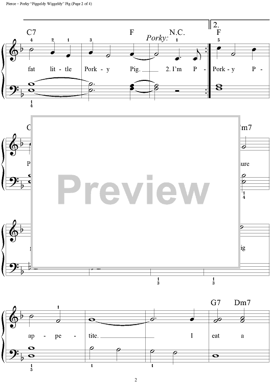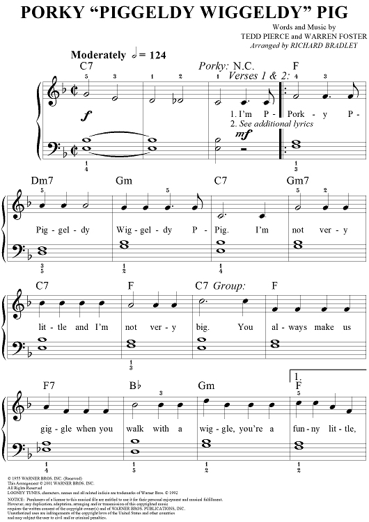 Digital Sheet Music for Porky "Piggeldy Wiggeldy" Pig by Richard Bradley, Warren Foster, Tedd Pierce scored for Easy Piano/Vocal; id:285581