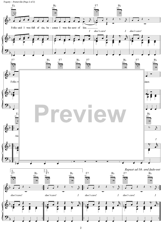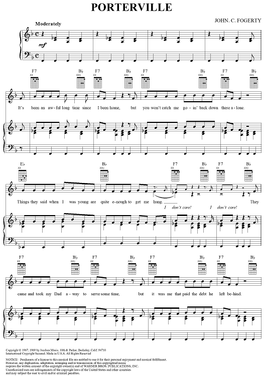 Digital Sheet Music for Porterville by John Fogerty, Creedence Clearwater Revival scored for Piano/Vocal/Chords; id:269678