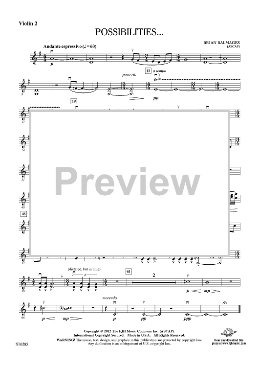 "Possibilities … - Violin 2" Sheet Music by Brian Balmages