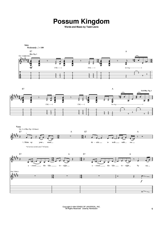 Digital Sheet Music for Possum Kingdom by Todd Lewis, Toadies scored for Guitar Tab; id:401455