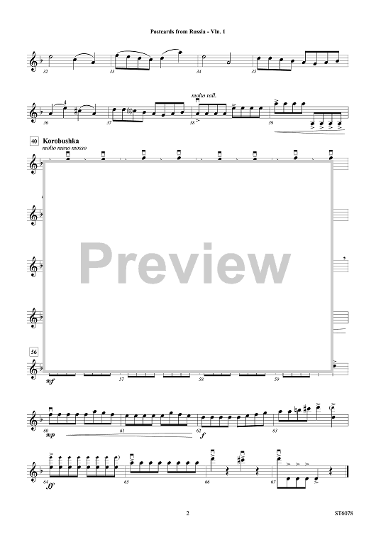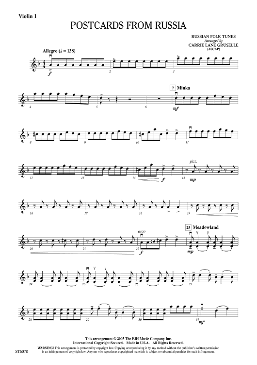 "Postcards from Russia - Violin 1" Sheet Music by Russian Folk Tunes