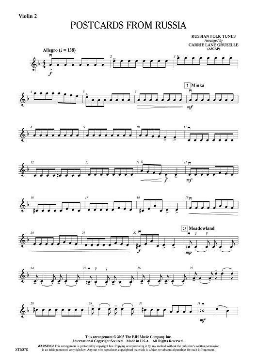 "Postcards from Russia - Violin 2" Sheet Music by Russian Folk Tunes