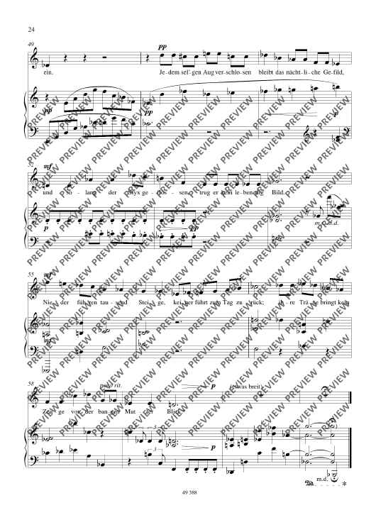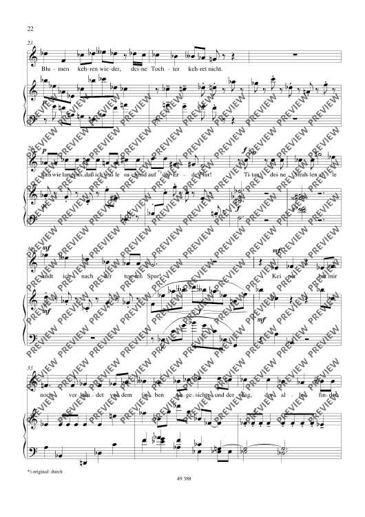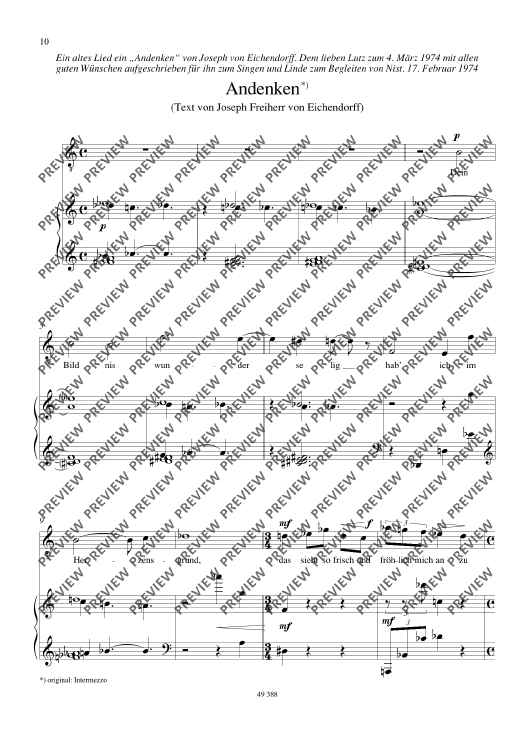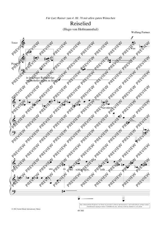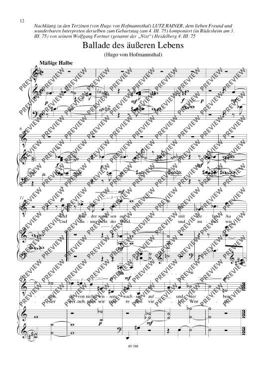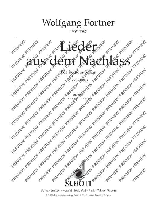 In his later years Fortner wrote a number of compositions for specific, usually private, occasions, most to texts by major German poets. These songs from his estate are here published as a collection for the first time. The dedications are very personal and intimate, in keeping with the private realm of the compositions. The transparent, delicate piano writing, reminiscent of some of Webern’s setting, is indicative of Fortner’s commanding mature style - economical yet relaxed and mellow.