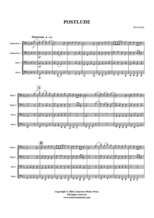 Digital Sheet Music for Postlude - Score by Ron Geese scored for Tuba Quartet; id:360303