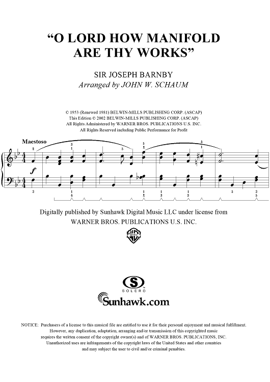 Digital Sheet Music for Postludes: O Lord How Manifold Are Thy Works by John W. Schaum, Joseph Barnby scored for Piano Solo; id:290163