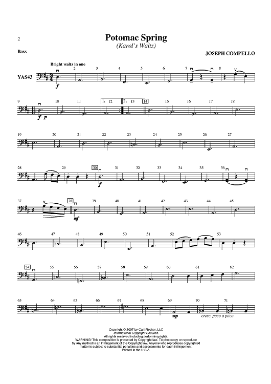 "Potomac Spring - Bass" Sheet Music by Joseph Compello