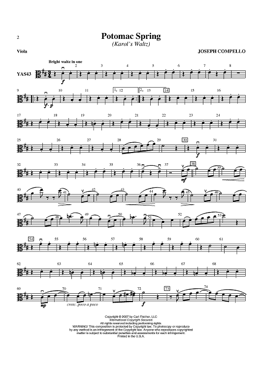 "Potomac Spring - Viola" Sheet Music by Joseph Compello