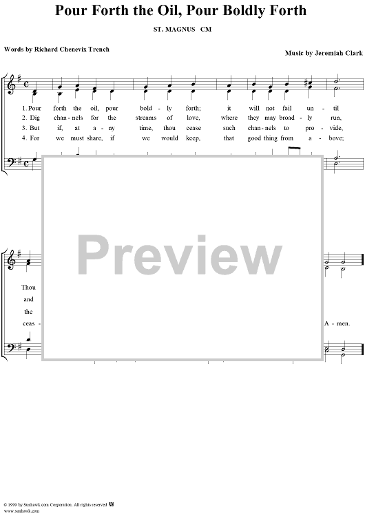 Digital Sheet Music for Pour Forth the Oil, Pour Boldly Forth by Jeremiah Clarke scored for Four-part Mixed Chorus; id:272739