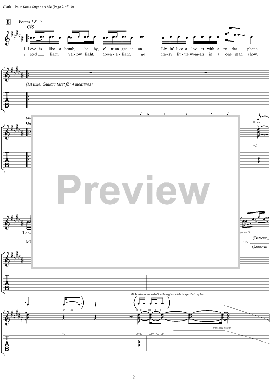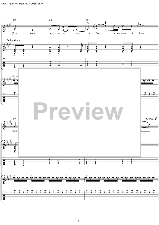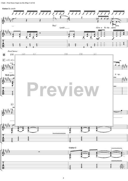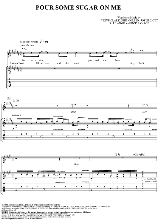 "Pour Some Sugar On Me" Sheet Music by Def Leppard