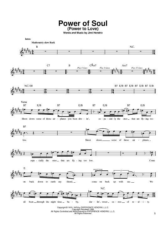 Digital Sheet Music for Power Of Soul (Power To Love) by Jimi Hendrix scored for Lead Sheet; id:374264