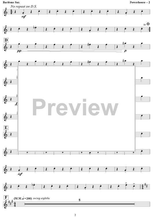 Digital Sheet Music for Powerhouse - Baritone Sax by , Paul Hansen, Raymond Scott scored for Saxophone Quintet; id:430305