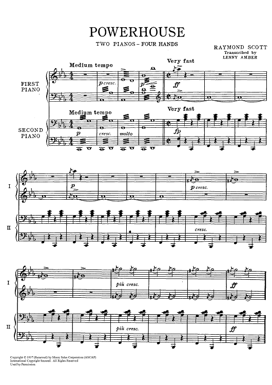 Digital Sheet Music for Powerhouse by Raymond Scott, Lenny Amber scored for 2 Pianos, 4 Hands; id:430078