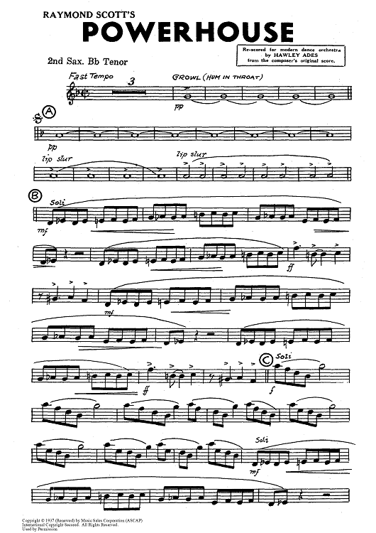 "Powerhouse - Tenor Sax 2" Sheet Music by Raymond Scott