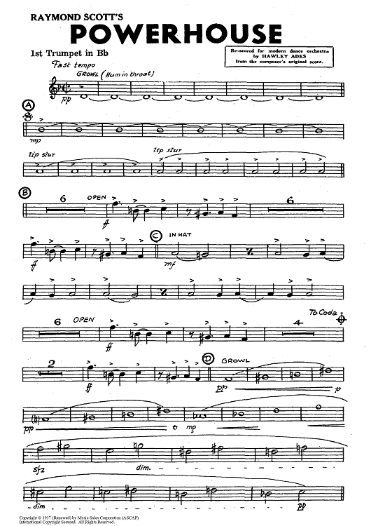 "Powerhouse - Trumpet 1" Sheet Music by Raymond Scott