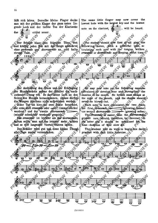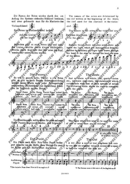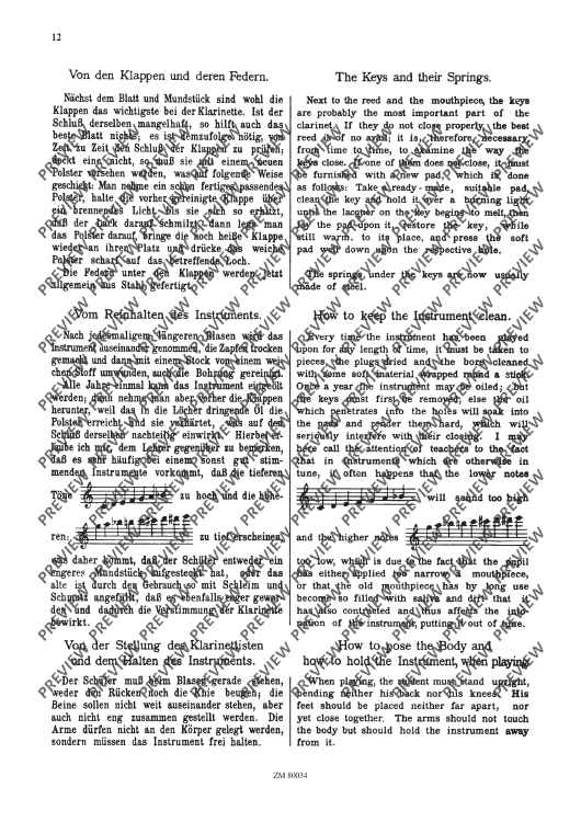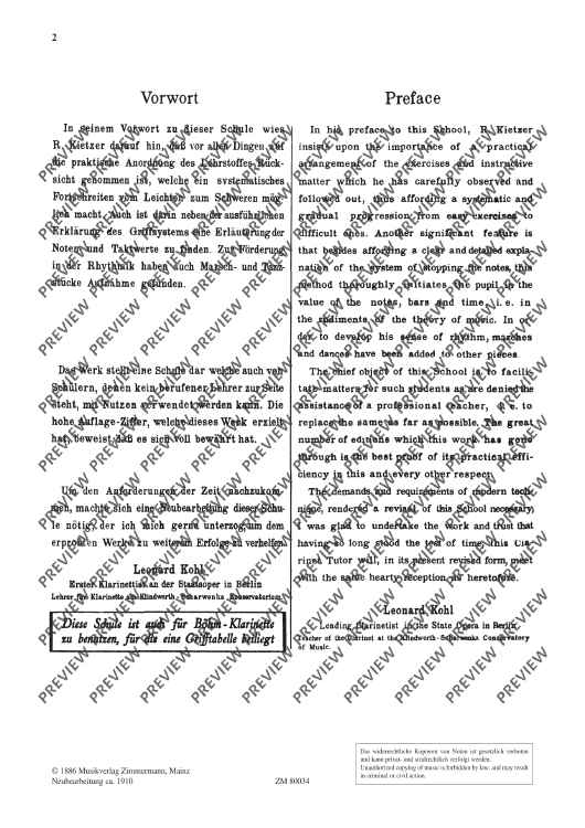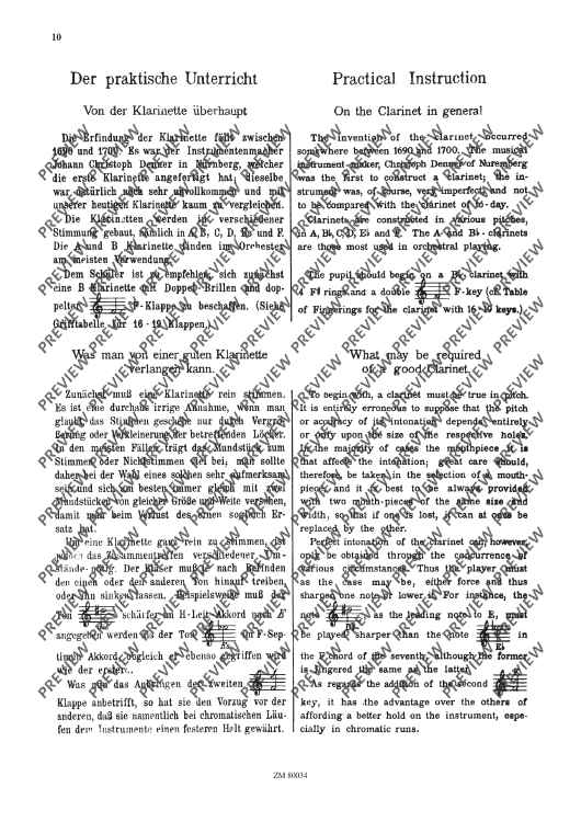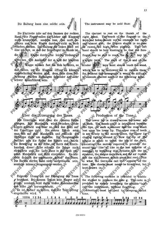 Dies ist die klassische Klarinettenschule, nach der Generationen von Klarinettisten/innen ihr Metier gelernt haben. Sie ist nahezu in einer Millionenauflage seit damals über alle Erdteile vertreitet und an zahlreichen Konservatorien, Musikschulen und im Privatunterricht eingeführt (ab ca. 1930 in einer verbesserten und erweiterten Ausgabe von Leonard Kohl, Klarinettist an der Berliner Staatsoper). Ohne Schnickschnack wendet sich diese Schule an Schüler, die konsequent und systematisch alles lernen wollen, was zu einem erfolgreichen Klarinettenspiel gehört, inklusive einer Elementarlehre der Musik und Instrumentenkunde. Zwei Grifftabellen (für System Boehm und deutsches System) sind beigelegt.
