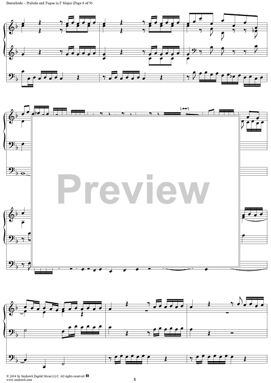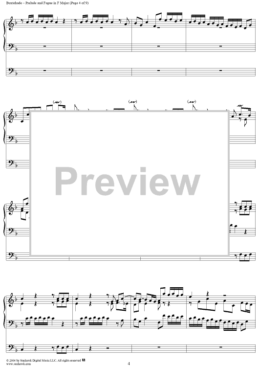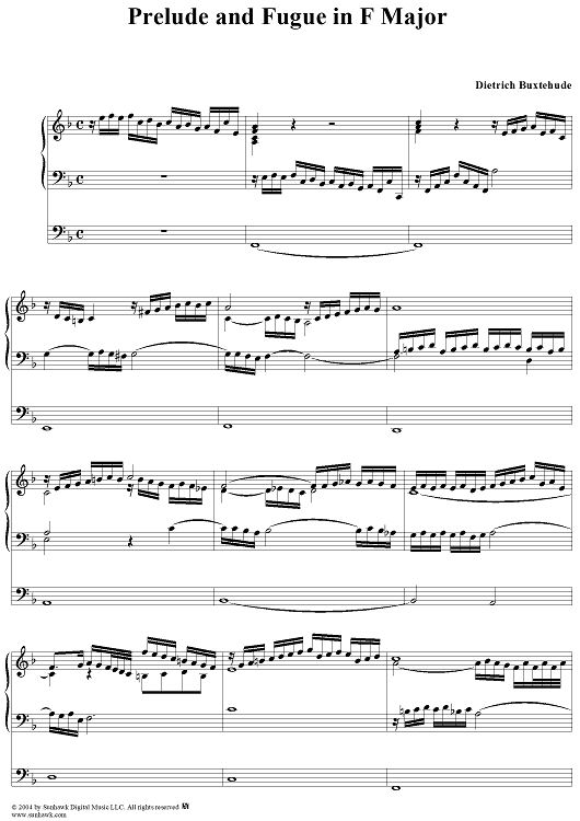 Digital Sheet Music for Praeludium und Fuga in F Major by Dietrich Buxtehude scored for Organ Solo; id:302908