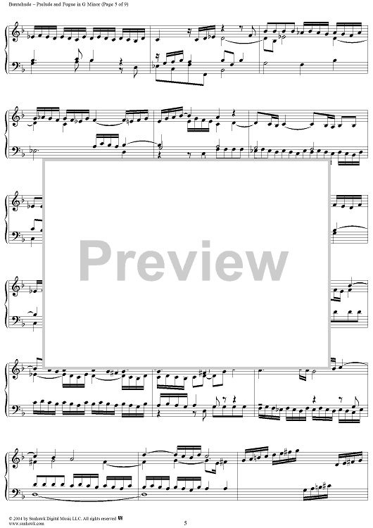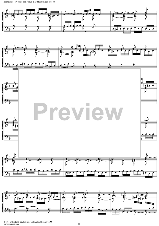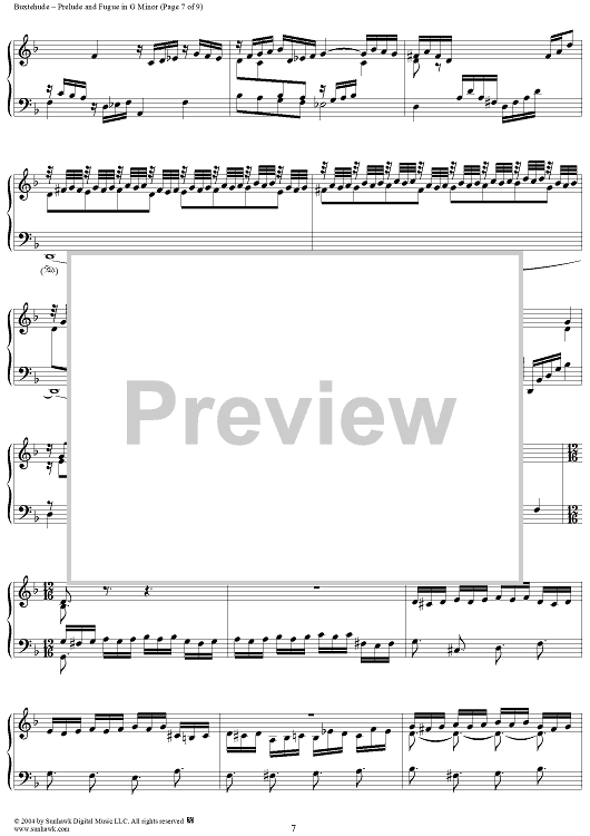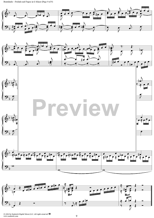 Digital Sheet Music for Praeludium und Fuga in G Minor by Dietrich Buxtehude scored for Organ Solo; id:302909