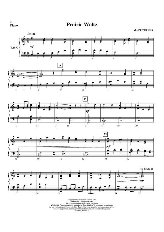 "Prairie Waltz - Piano" Sheet Music by Matt Turner