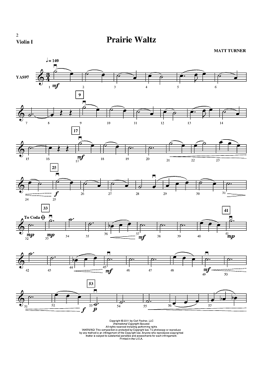 "Prairie Waltz - Violin 1" Sheet Music by Matt Turner