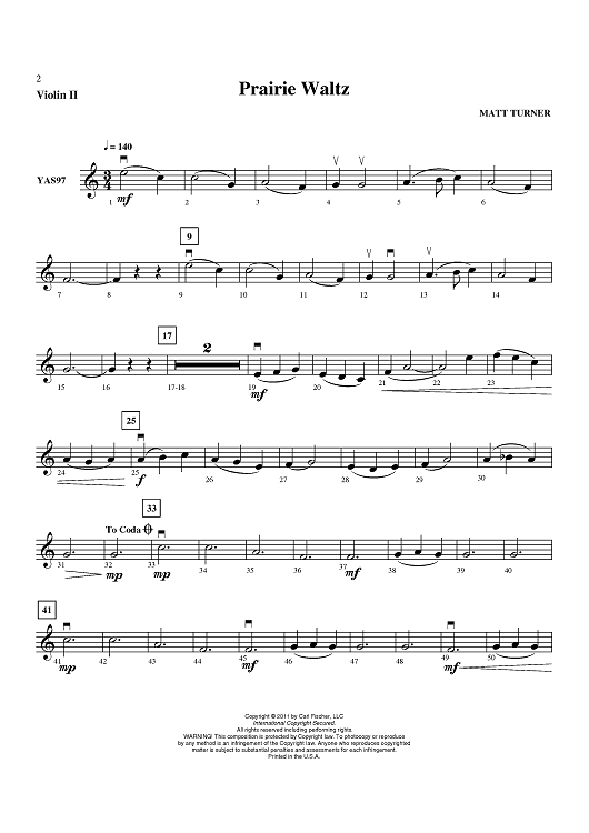 "Prairie Waltz - Violin 2" Sheet Music by Matt Turner