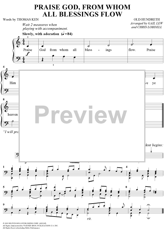 Digital Sheet Music for Praise God, from Whom All Blessings Flow by Thomas Ken, Gail Lew, Chris Lobdell, Traditional scored for Easy Piano/Vocal; id:297170