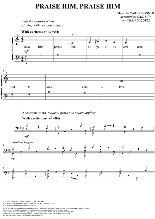 Digital Sheet Music for Praise Him, Praise Him by Gail Lew, Chris Lobdell, Carey Bonner scored for Easy Piano/Vocal; id:297164