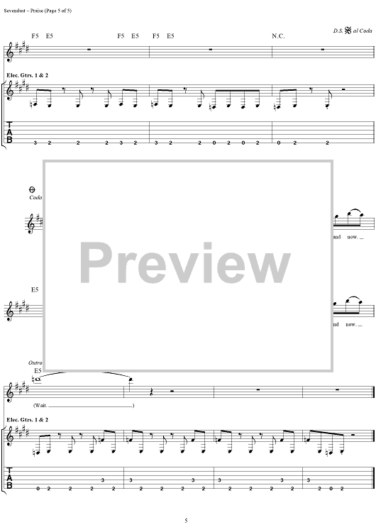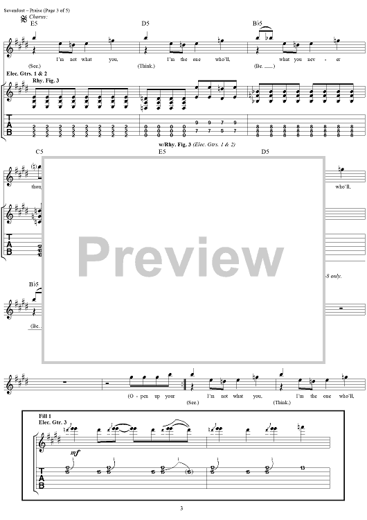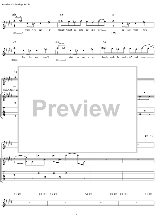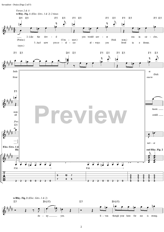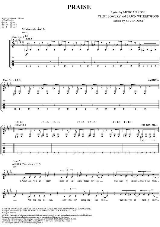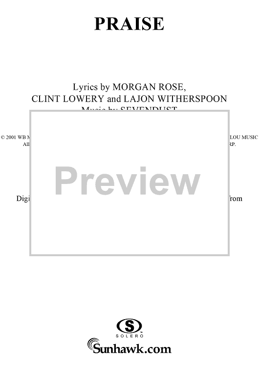Digital Sheet Music for Praise by Sevendust, Morgan Rose, Clint Lowery, Lajon Witherspoon scored for Guitar Tab/Vocal; id:289663