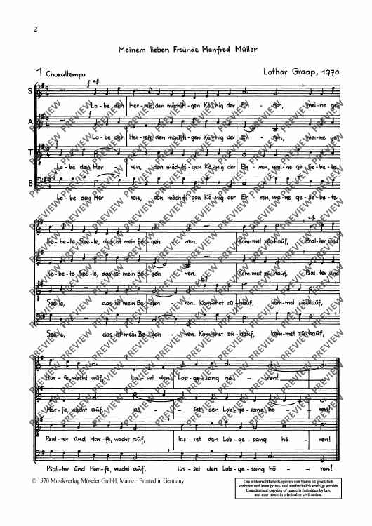 Digital Sheet Music for Praise the Lord, the mighty king of honor - Choral Score by Lothar Graap scored for Mixed Choir (satb) A Cappella; id:496693