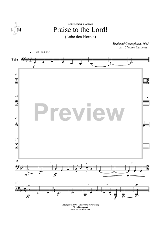 Digital Sheet Music for Praise to the Lord! - Tuba by Timothy Carpenter, Stralsund Gesangbuch scored for Brass Quintet; id:410408