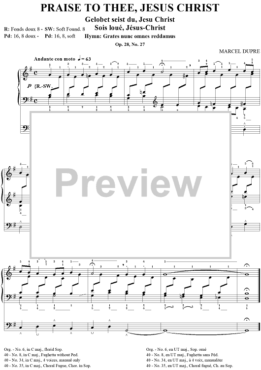 Digital Sheet Music for Praise to Thee, Jesus Christ, from "Seventy-Nine Chorales", Op. 28, No. 27 by Marcel Dupre scored for Organ Solo; id:270913