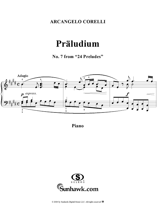 Digital Sheet Music for Präludium in E Major, No. 7 from "Twenty Four Preludes" by Arcangelo Corelli scored for Piano Solo; id:304055