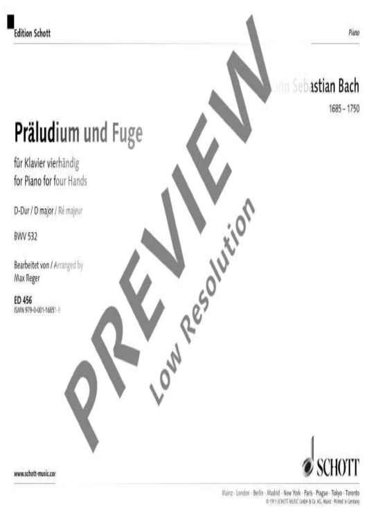 Digital Sheet Music for Präludium und Fuge D by Johann Sebastian Bach scored for Piano (4 Hands); id:472282